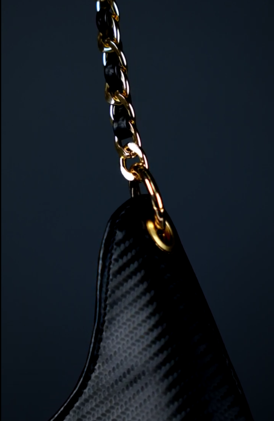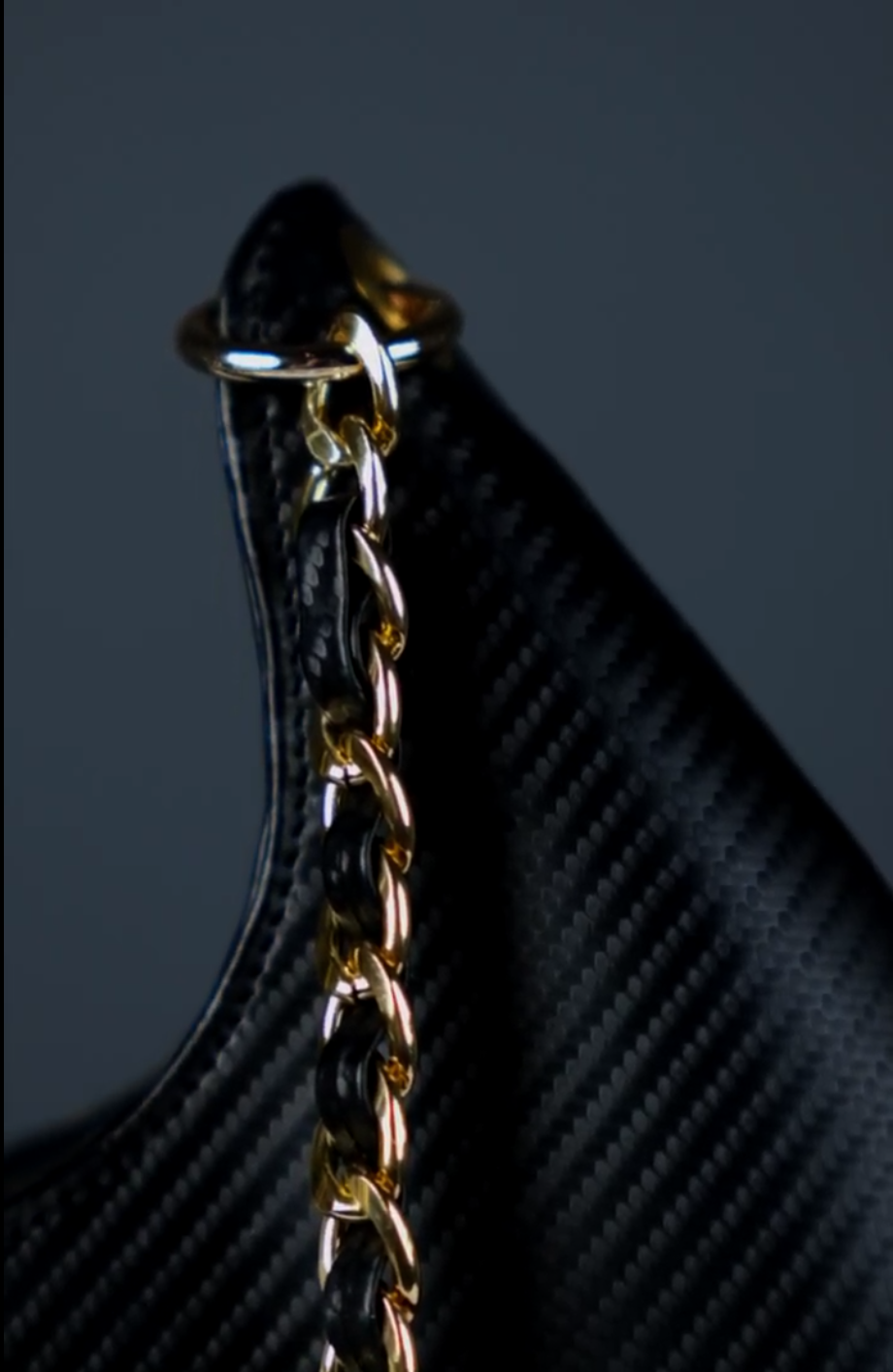 Crafted from premium cow leather with a sleek carbon print, the Carbon Luxe shoulder bag is a bold expression of modern luxury. Golden chains interwoven with leather add a touch of elegance, while impeccable craftsmanship ensures style and durability—perfect for those who demand high-quality sophistication.